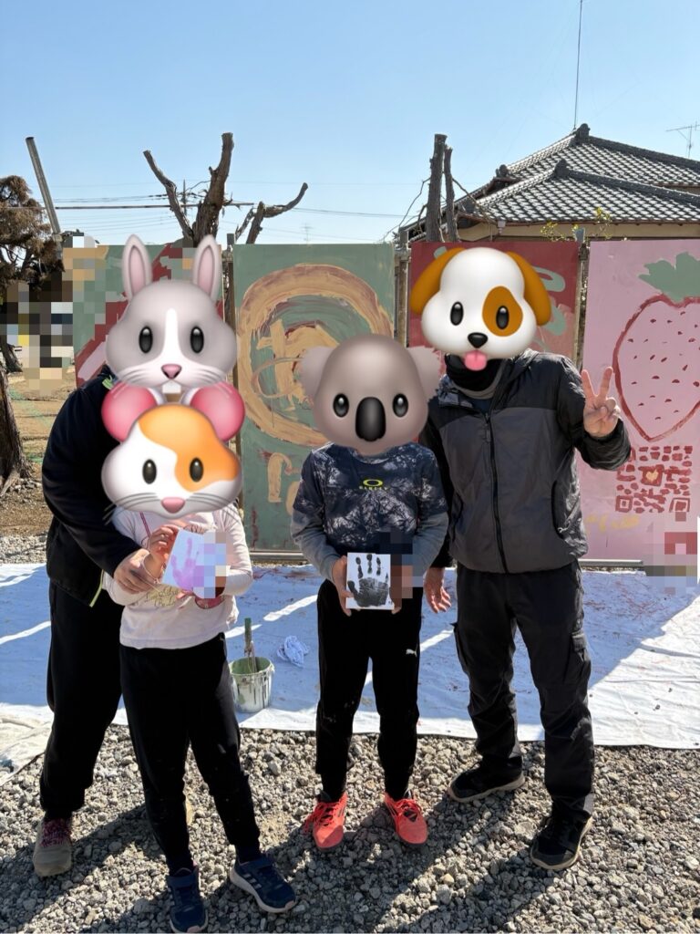 最初は奥様とお子様の3人で旦那様は撮影係をするという事だったんですが面白そうなので自分も参加していいですか?という事で家族全員でペイント体験のスタートです👍